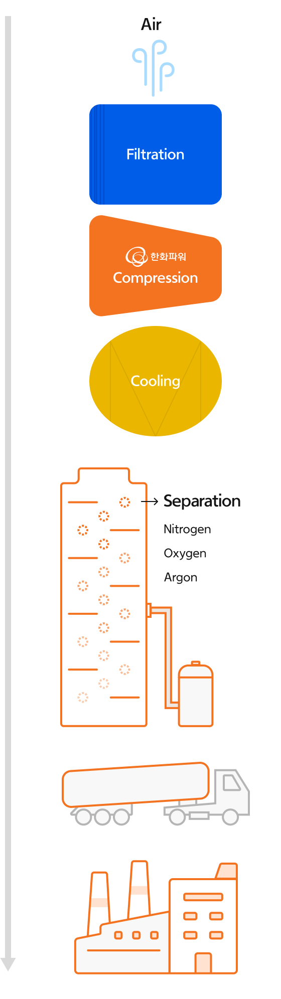 - 공기 분리 장치(Air Separation Unit)는 대기의 공기를 주요 성분(질소, 산소 및 아르곤 등 특수 가스)으로 분리하는데 사용되는 산업 시설