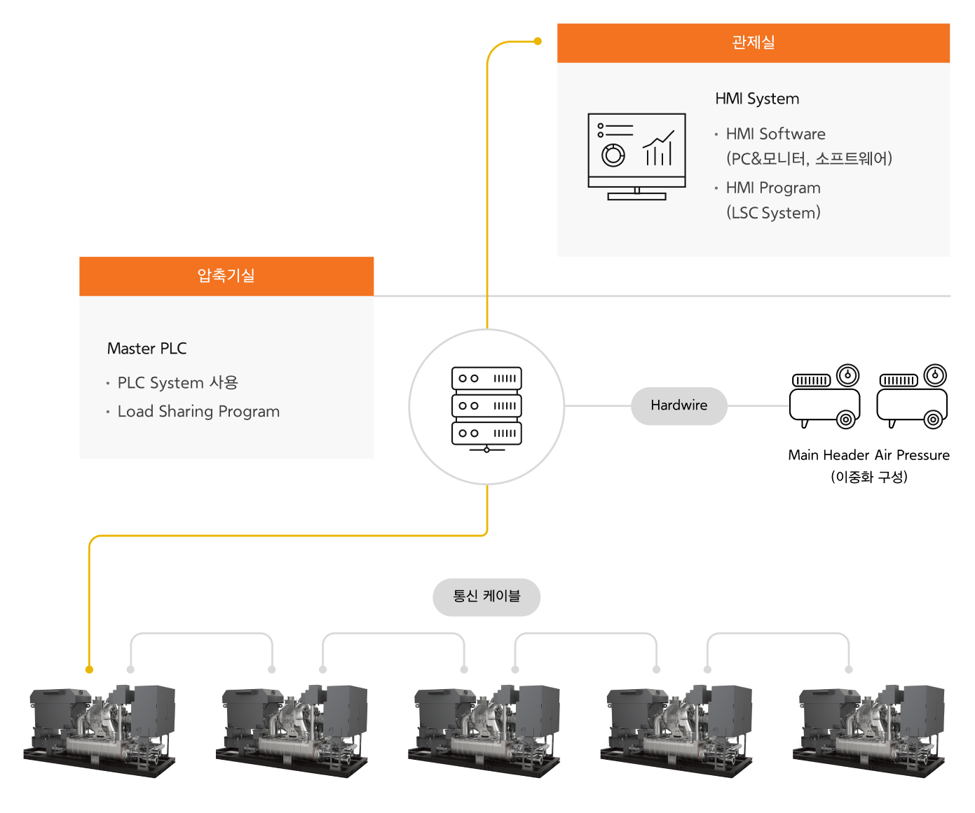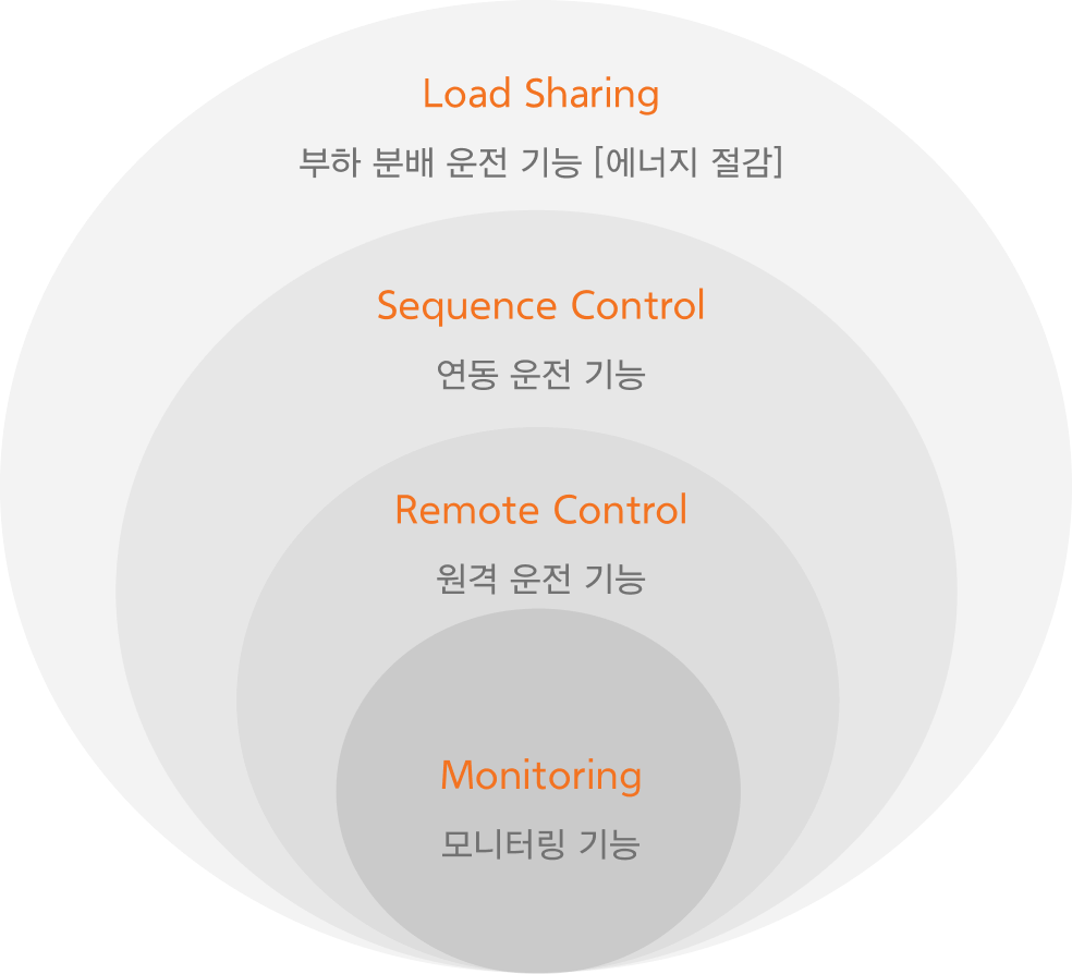 우리 부하연동시스템은 여러 대의 압축기를 동시에 사용하는 사업장을 대상으로 현장의 압력과 유량의 변화에 신속하고 효율적으로 대응하며,